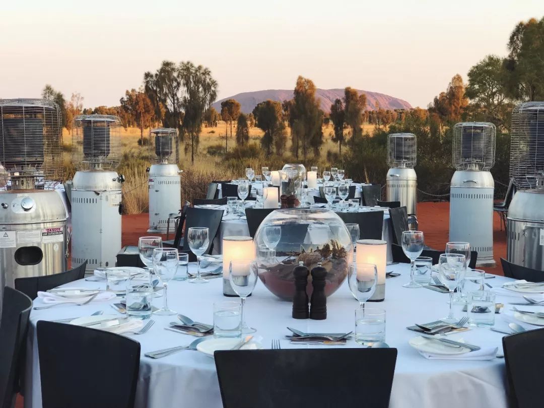 这场有着好听名字的晚宴,被安排在乌鲁鲁与卡塔丘塔之间的沙丘上,坐拥红土中心观赏日落和星空的最佳位置。