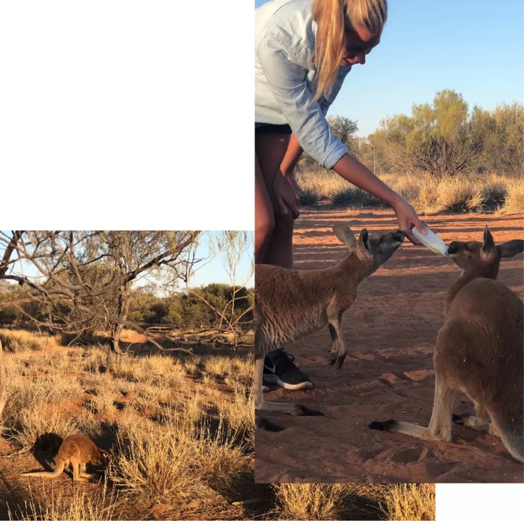 这里的日落观光游览不仅可以欣赏澳洲中部独特的丛林日落,听Brolga讲述他和袋鼠们的故事,还可以期待与丛林觅食的澳洲红袋鼠们的邂逅,也许会机会抱抱刚出生的小袋鼠,给它们喂食。