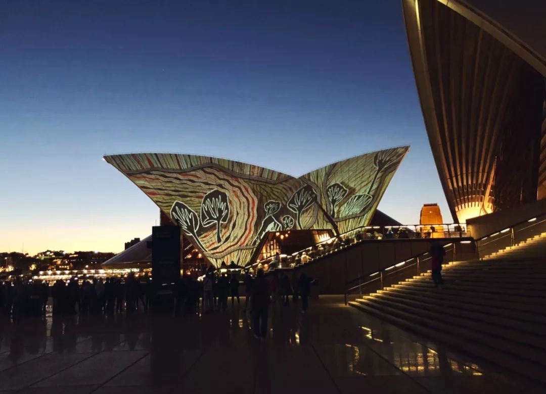 Badu Gili指的是“水灯”,从落日时分至晚上9点期间,歌剧院会穿上五彩服装,展示一场以澳洲原住民的艺术图腾作为设计灵感的灯光秀。