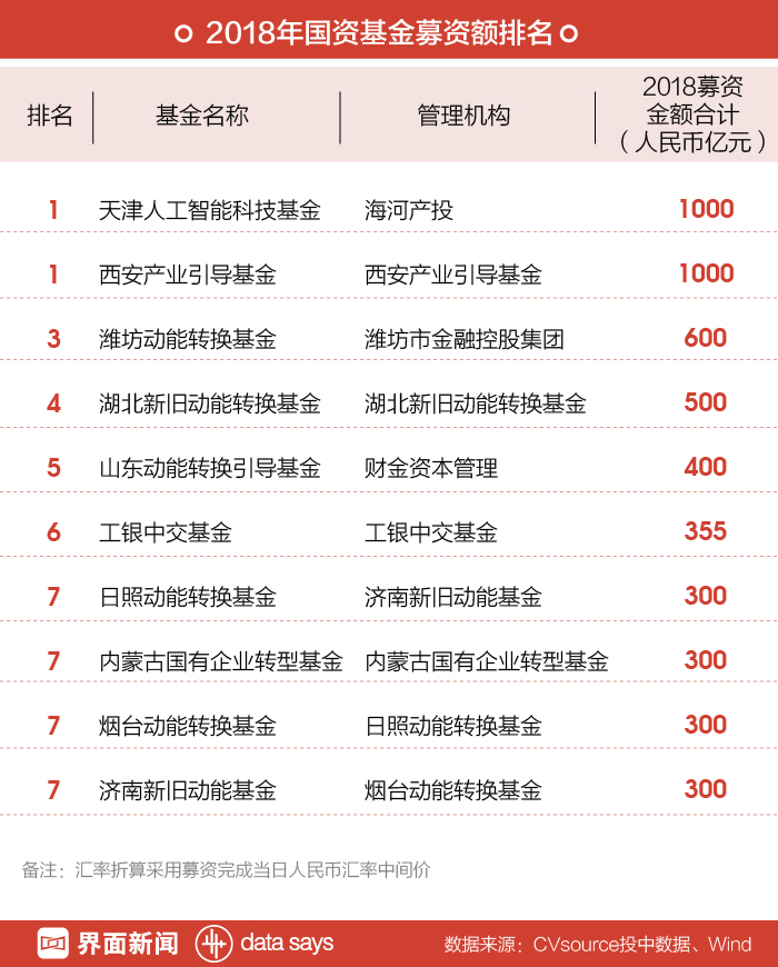 本篇以2018年国资为主体的股权投资基金募集事件为观察视角,基于募集金额对2018年以来1,397次基金募集事件进行筛选后大排名,数据来自CVsource投中数据和Wind。