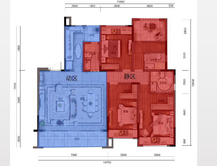 融创碧桂园望江府7号楼D1户型动静分区