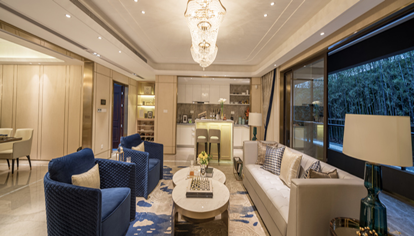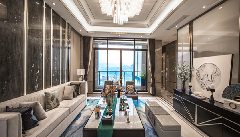 望江府客厅样板间(图片经融创·碧桂园望江府授权使用)