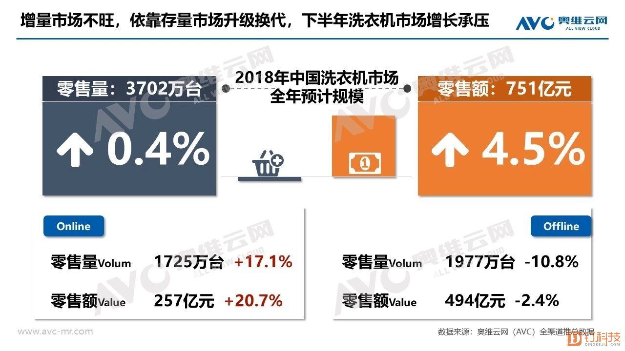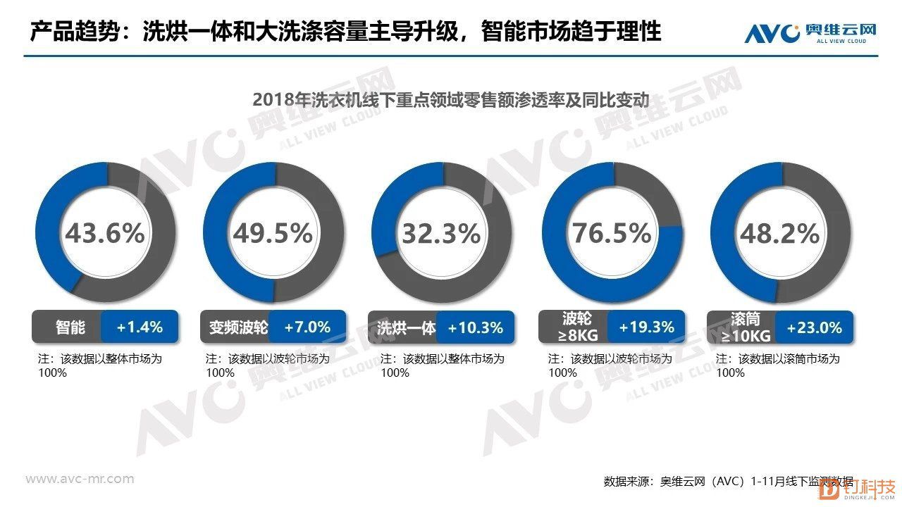 从洗衣机行业来看,根据奥维云网给出数据,今年整体市场增量不大,业绩上升主要来源于洗烘一体机,小米也是看中这一块蛋糕,推出了10kg级洗烘一体机。