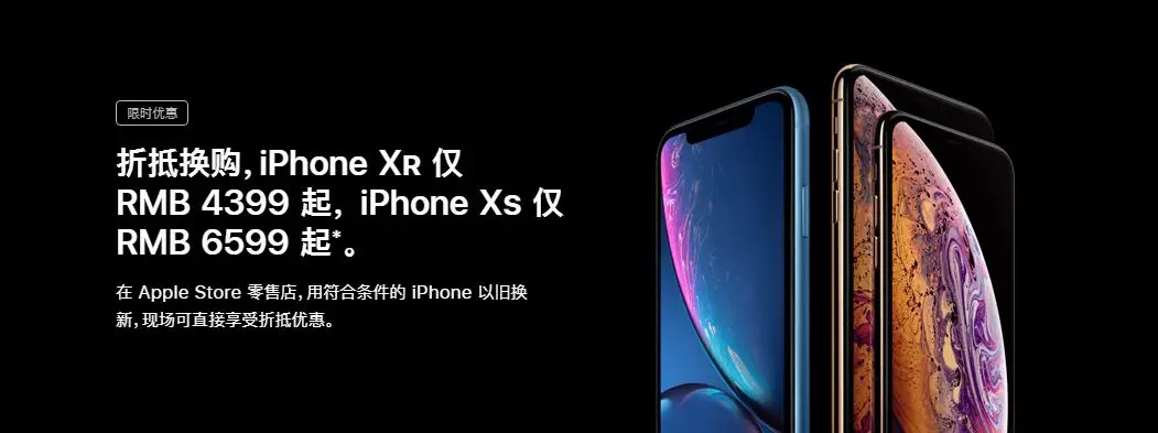 我们不考虑开售当日抢券这样的营销活动,而是观察常态价格。iPhone Xs和Xr日前打出了“折价换购,iPhone XR仅RMB4399起,iPhone XS仅RMB6599起”的广告,虽然苹果一直有以旧换新活动,不顾在以前的以旧换新活动中,iPhone6只能折600块钱,现在却可以抵1200块钱,显然这是变相降价,此前在双11等促销场合苹果同样在降价,iPhone Xs成为最快突破定价的iPhone。