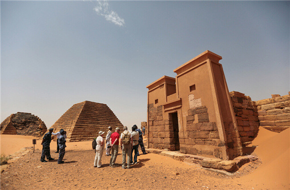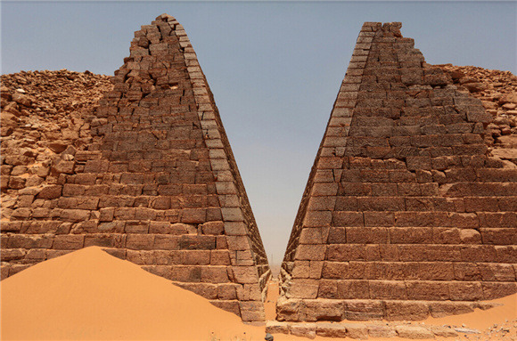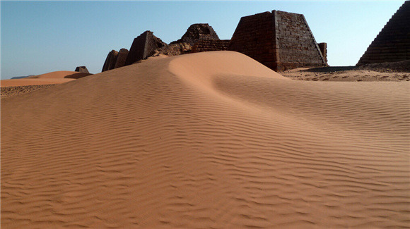 麦罗埃(Meroë)金字塔建于2700-2300年前,是与埃及金字塔齐名的联合国教科文卫组织确定的世界遗产。从外观看,麦罗埃金字塔造型独特,塔壁陡峭,也不像埃及金字塔那么高大,而且大多矗立在沙山之上。这些金字塔被认为是努比亚金字塔,因为这里曾是被称为“黑法老”的库施王国统治者居住的地方。金字塔内可以找到古埃及、古希腊和古罗马的文化装饰元素。