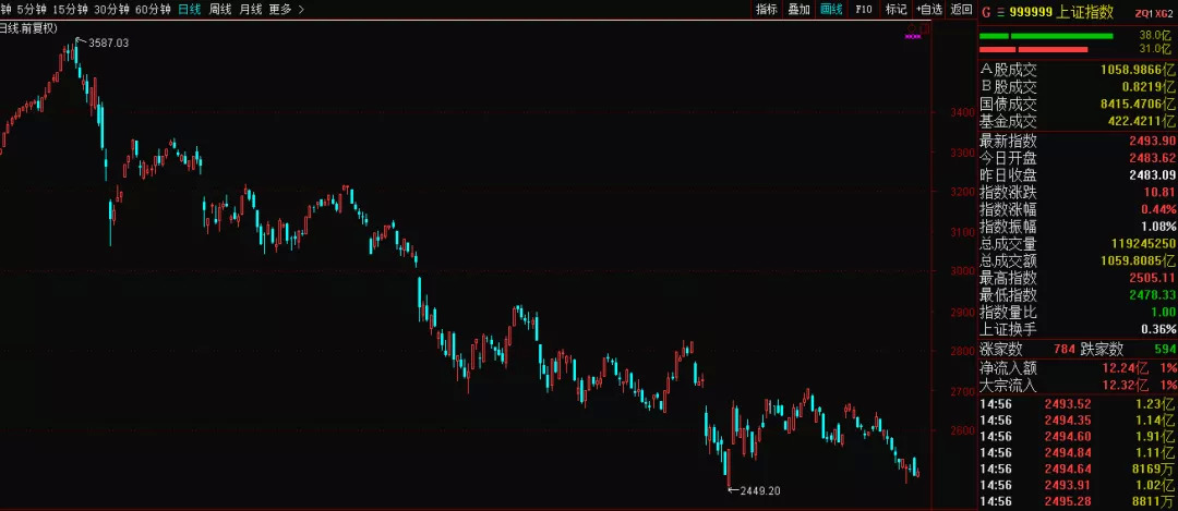 2018年,中国的股市走势可以说比房地产更惨。1月2日,上证开盘3314点,12月28日,收盘2493.9。这一年到头就基本没怎么涨过。