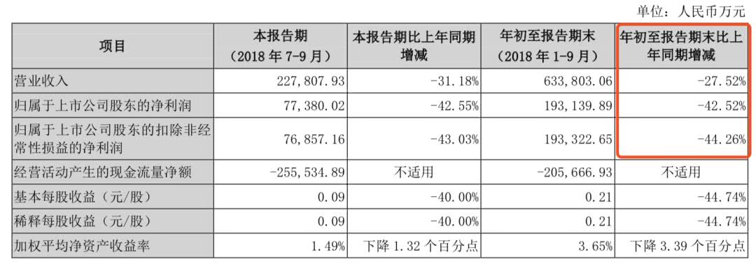 据2018年三季报显示,国信证券前三季度营业收入63.4亿元,同比下降27.52%;归属于上市公司股东的净利润19.3亿元,同比下降42.52%。