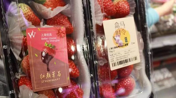 青浦区的首批白鹤草莓也于近日在盒马上架。据说上海第一颗草莓就发源于青浦,而白鹤草莓在上海有30多年的种植历史。除了这些最能体现上海特色的地产风物,被“盒区房”覆盖的消费者还能通过盒马买到来自全球的进口生鲜。