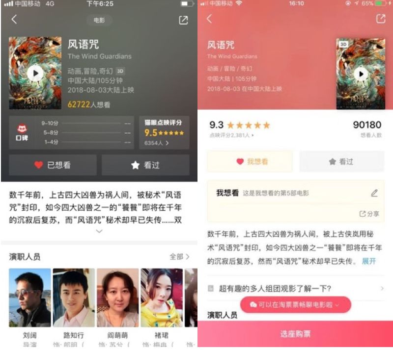 《风语咒》在宣发早起就已经确定了口碑营销工作的体系和步骤,即以粉丝带动映前评分、以点映带动映后评分、以票务平台为主口碑阵地的口碑策略。