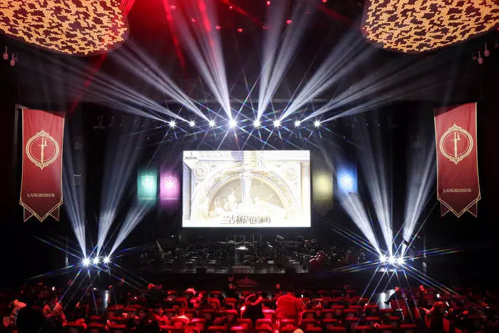 与两人道别时,音乐的盛宴已经拉开帷幕。率先奏响的是《梦幻模拟战》手游的主题曲,总在大地图界面循环播放的这首曲子经过重新编排,以彻底战胜审美疲劳的全新姿态重现,配合幕布上投影的历代“梦幻模拟战”游戏画面回顾,为整部编年史赋予了新的灵魂。接下来在舞台上回响的是“光之起源”组曲,即《梦幻模拟战3》战役的主旋律,在手游版中多以敌方回合的背景音乐登场。在上海爱乐乐团的精彩演奏下,管弦乐器化作兵戈,将观众带回了那片乱世中的战场。