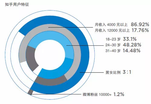 文章把知乎和豆瓣、果壳进行了对比——豆瓣长期“感冒”;果壳的内容营销难度大,且传播力度不强。但知乎对营销和公关最大的优势,在于它可以承载一些相对“重”的内容,且有优质的用户土壤可用于背书。从传播的角度考虑,知乎的用户本身就处在中国互联网用户金字塔的中上层,无需过多的人为推力,重力就是最好的传播武器,很容易产生四两拨千斤的典型案例。
