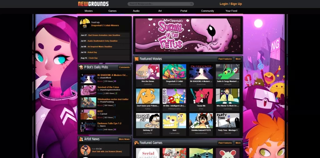 除了The Behemoth之外,也有其他独立开发团队通过制作Flash游戏崭露头角。此前Newgrounds网站上只有聊天室和留言板,不过在1998年,Fulp添加了门户(Portal)新功能,允许游戏制作者与其他人分享作品。