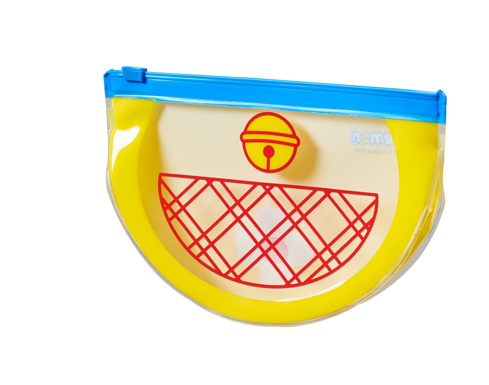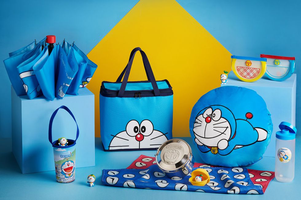 这一周边系列涵盖便当盒、折叠伞、手提袋等多种单品。便当盒盒盖将哆啦A梦的圆脸浮雕烙印在上面,并特别搭配印有时钟图案的“时光包巾”,来为你把冷却便当带出热腾腾滋味;小型手包被设计成哆啦A梦百宝袋的形状,由透明PVC防水材料制作而成,使用又可爱;天蓝色的哆啦A梦折叠伞则使用抗紫外线UV材质制作,既能“躲雨”又能防晒,轻便好用。