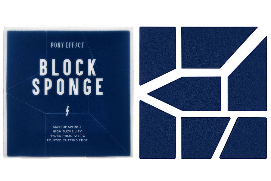 Pony Effect 同时也推出了搭配这款遮瑕粉底使用的粉扑。深蓝色的粉扑被切割成多块不规则形状,遮瑕时时可根据部位的不同来选择具体粉扑。不同切块搭配使用,即可大面积上妆又能照顾到鼻翼两侧与眼下细节,让遮瑕不留一处死角。