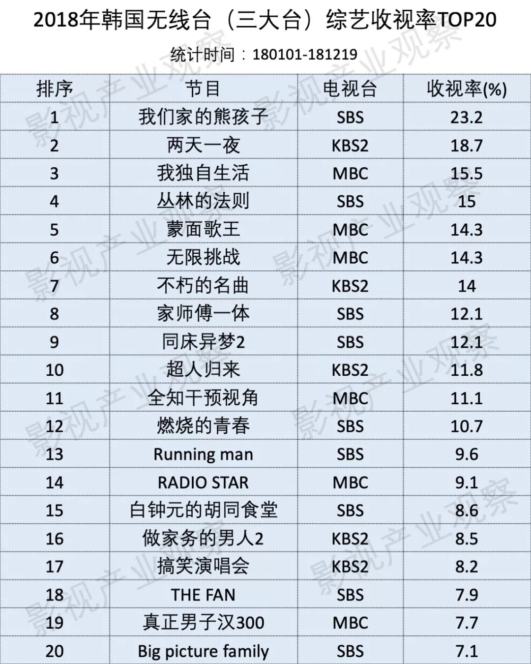 2018年的韩综,可以说是这样的一年:三大无线台走下神坛,有线台、综编台也涌现黑马,迎头赶上。