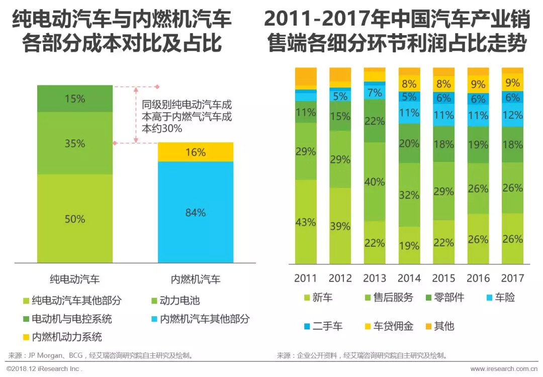 汽车巨头布局电池与充电网络的战略动机即是从串联上下游产业出发。中国新能源车企亦可与上游动力电池供应商建立深厚的合作关系,从动力电池的角度开发全新的新能源汽车平台以寻求成本降低与技术突破。向下业务的扩展则源于汽车产业盈利点的转移:中国新车利润在产业链条中的占比已在7年内降低了17%,后市场服务利润则占比持续扩大。