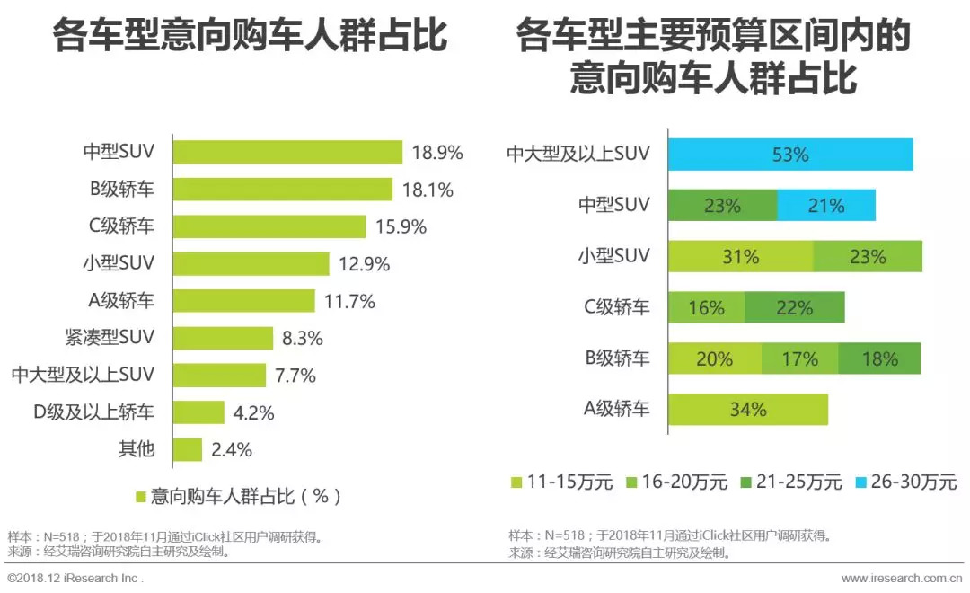 中型SUV与B级轿车更受青睐,消费者购车预算稍显不足