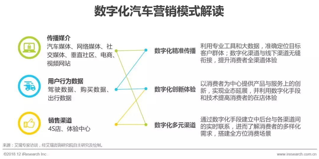 艾瑞认为,未来车企对数据的解读能力与其销售实现能力之间几乎可以画上等号;结合数字化的传播媒介与线上线下的多元渠道,车企可实现贯穿消费者整个购买决策的营销渗透。从技术进步的角度看,人工智能与算法的发展会对车企的数据运用能力产生巨大积极影响,进而可以推动车企营销的数字化广度与深度。