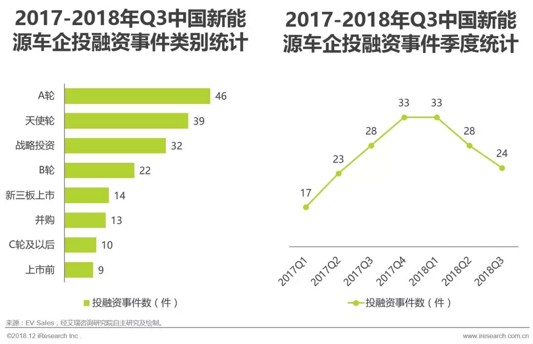 2017-2018年三季度,中国新能源汽车行业融资事件超过180起,而早期融资轮次多数来自于“互联网造车”势力。