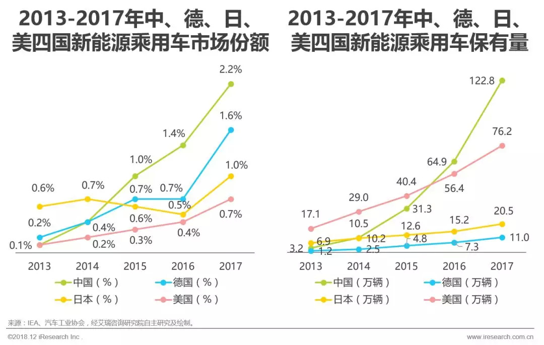 2018年,不振的经济形势与高居民杠杆率引发的挤出效应致使中国汽车市场短期遇冷,新能源汽车却逆势而上,市场规模迅速扩大,预计将于2020年实现500万辆的保有量目标。乘用车方面,销量增长迅猛,市场格局无明显变化,补贴“退坡”令低续航里程的小微车型需求有所淡化;A级及以上轿车车型与SUV车型热度提升,市场仍主要依赖补贴政策驱动。