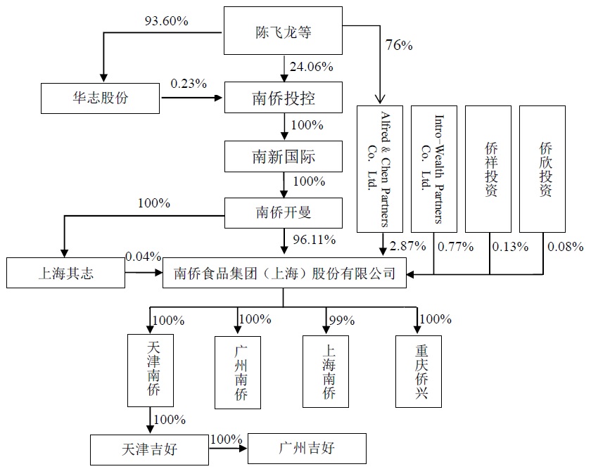 南侨股份实际控制方为南侨开曼。本次新股发行前,南侨开曼直接持有南侨股份96.11%的股份,并通过全资子公司上海其志间接持有南侨股份0.04%的股权。目前南新国际持有南侨开曼100%股权,而在台湾证交所上市的南侨投资控股股份有限公司(下称南侨投控)持有南新国际100%股权。
