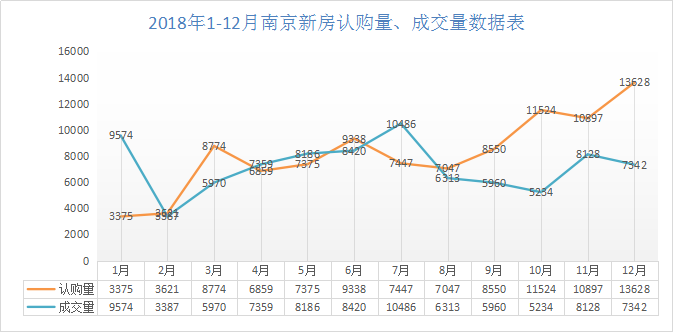 截至2018年12月31日下午13时,南京楼市12月新房认购13628套,成交7342套,环比11月(11月新房认购10897套,成交8128套)认购量上涨25%,成交量下跌9.7%。