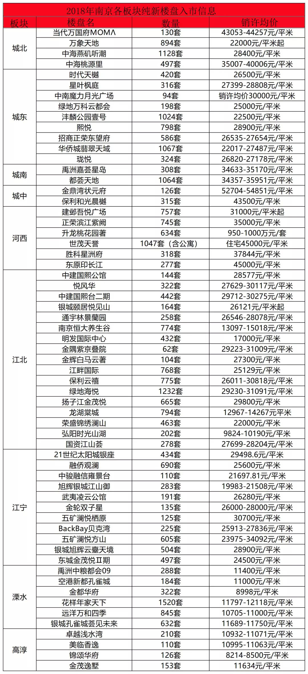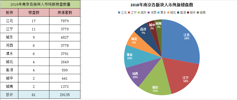 南京楼市2018年共计213家开盘,61家纯新盘先后入市
