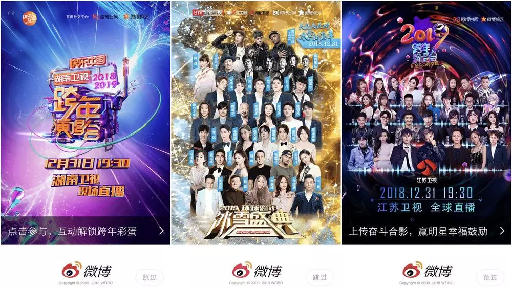 各大卫视的微博开屏广告。