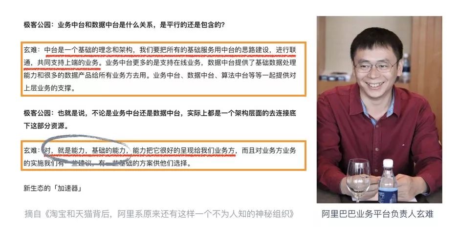 本文中我们一直提到的一个词就是“能力”,从玄难的这段采访也可以看出,在阿里,“能力”也是中台的核心。