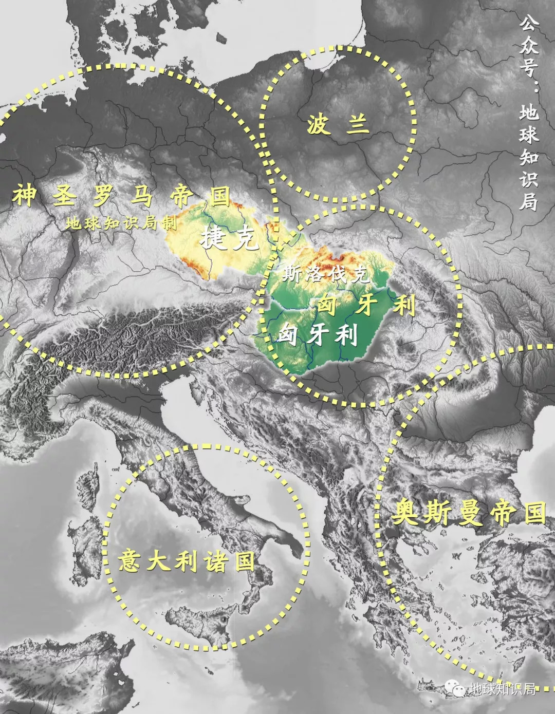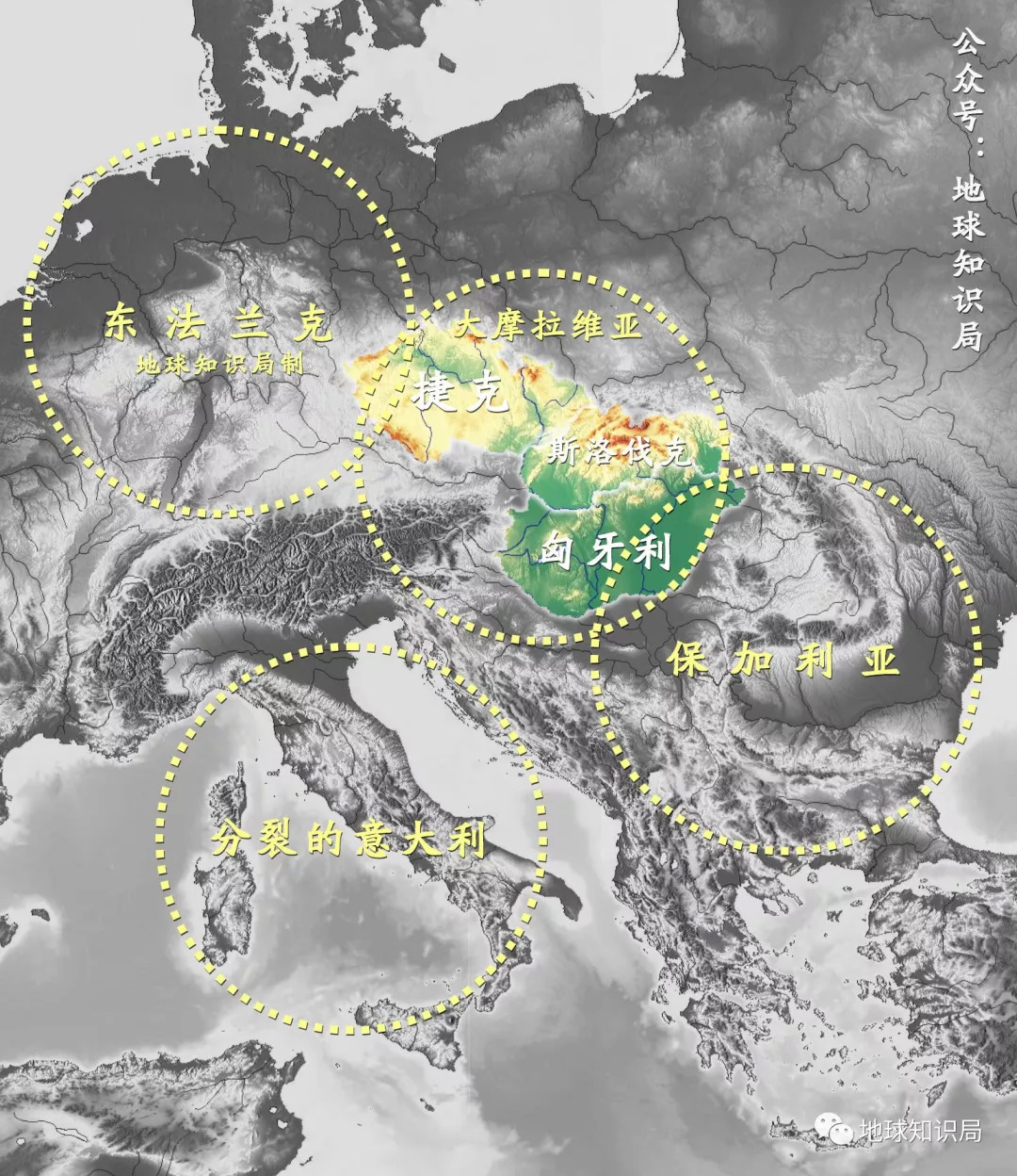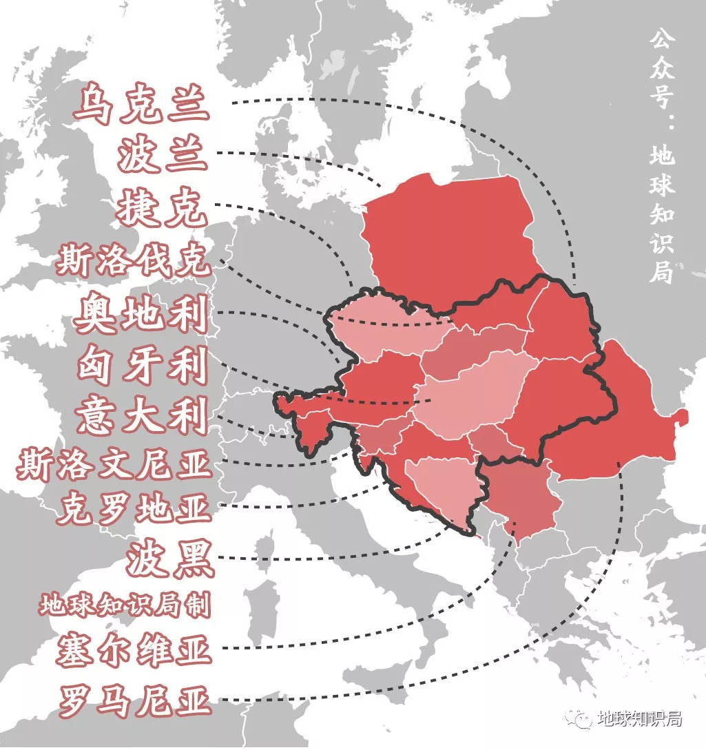 基本相当于今天的捷克+斯洛伐克+匈牙利