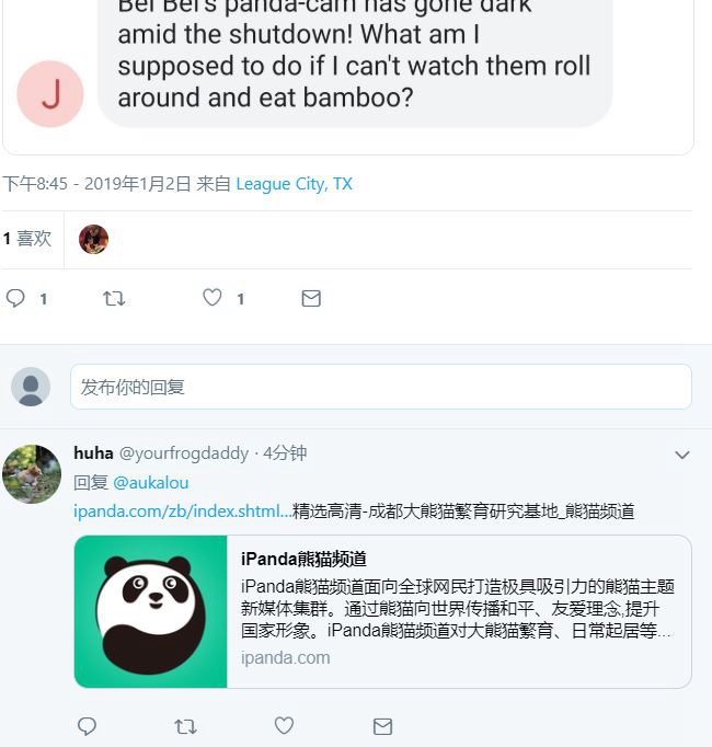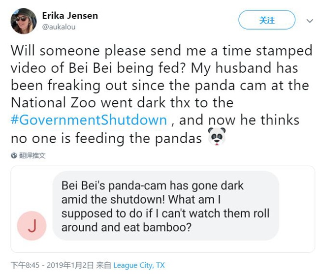 两党政治斗争导致熊猫直播下线,引起了美国熊猫迷的强烈不满,他们纷纷在Twitter上发文吐槽。