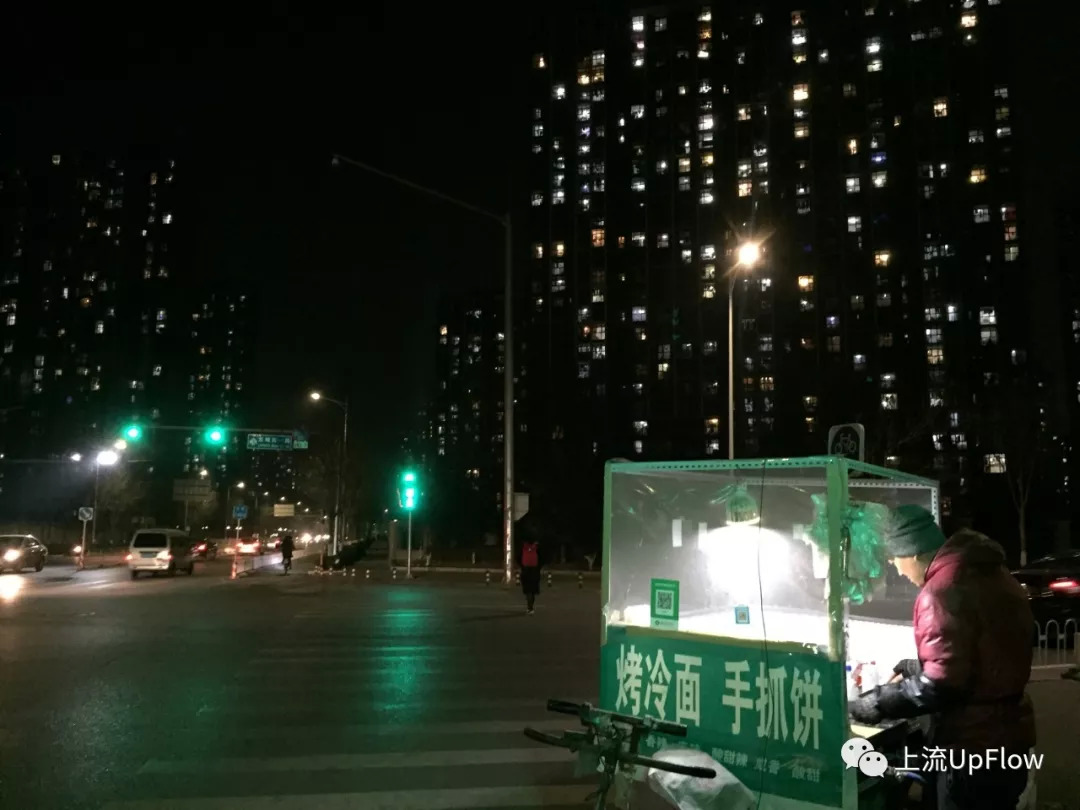 晚上走出地铁,也还能看到很多开着小台灯叫卖烧饼油条豆腐脑这种早点类的小摊,而不是各种24小时便利店。他们抬头看看,十点钟的夜晚天空灰蒙蒙的一片。