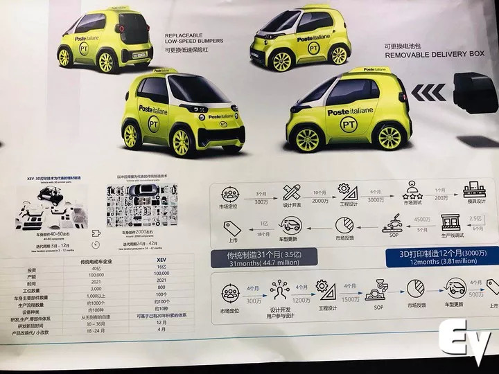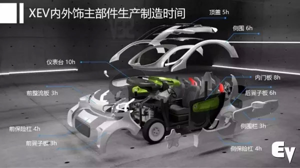 为此,XEV 专门研发了一套可以搭载 3D 打印技术的整车平台,以及一条以3D打印为核心的整车流水线。