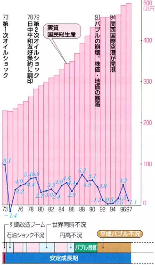 19世纪70年代日本结束了从60年代开始的高速经济增长,进入了稳定成长期。1971年尼克松冲击后,日元升值让日本经济一时陷入萧条,日本国内笼罩这一种悲观不安的情绪。兴起一时的列岛改造论又造成了股市和地价暴涨。1973年爆发了第一次石油危机,原油的进口价格翻了四倍。国内出现了严重的通货膨胀,1974年的经济在战后首次出现负增长的情况。