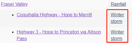 这些都是今天新鲜出炉的高速路况,涵盖了1号高速南部内陆路段,99号高速海天高速部分路段,以及Whistler前往Lillooet路段等多段高速公路。