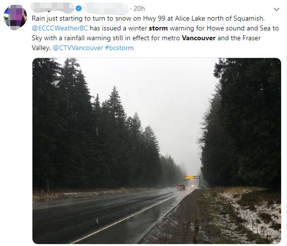 其中Whistler和南部内陆地区已被列入暴风雪警告地区,甚至部分高速路段已经完全封闭。