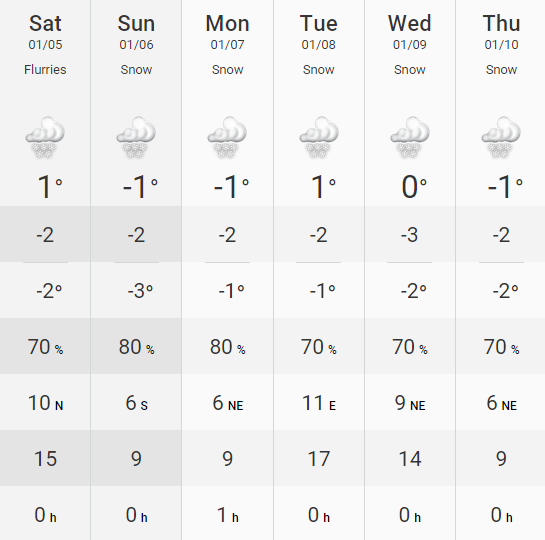 再看看最近7天的天气预报,大家可以感受一下暴风雪前的“宁静”: