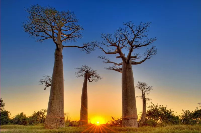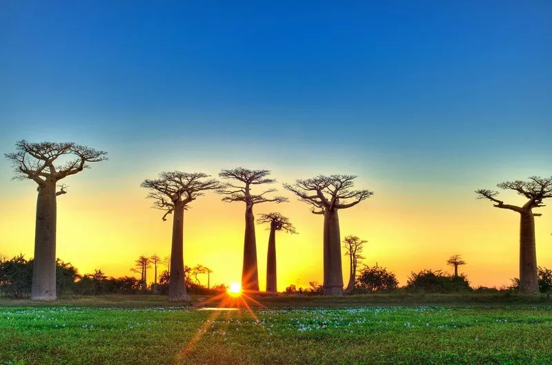 想要去看猴面包树,就要前往马达加斯加干旱的西部,尤其属穆隆达瓦的“猴面包树大道”最为壮观。这里集中生长了4个品种的猴面包树,人们在这里显得非常迷你,也成为了全世界摄影家们宠爱之地,不管是日出、日落亦或是夜晚,都拥有恍若外星球的迷人景致。