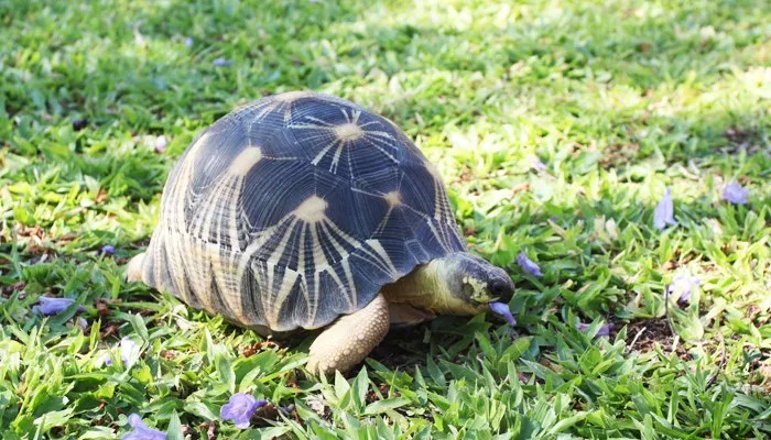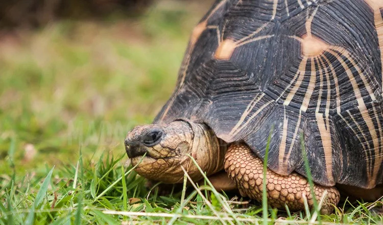 射纹龟又名辐射龟,属于陆龟科,濒临绝种的爬行类之一。分布在马达加斯加岛最南端及西南部干燥的灌木丛、荆棘林以及林地中,同时被引进到马岛附近的几个岛中。在吉尼斯世界纪录中,寿命最长的一只龟正是辐射龟,足足活了188岁。