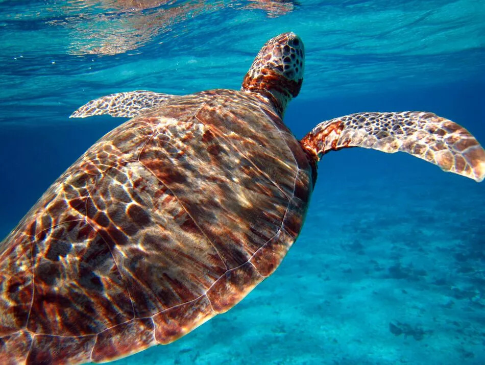 玳瑁属于海龟科的一种,生活在亚洲东南部、非洲大陆东海岸、马达加斯加以及附近岛群。主要栖息于沿海的珊瑚礁,海湾,河口和清澈的泻湖,相对较浅的水域。