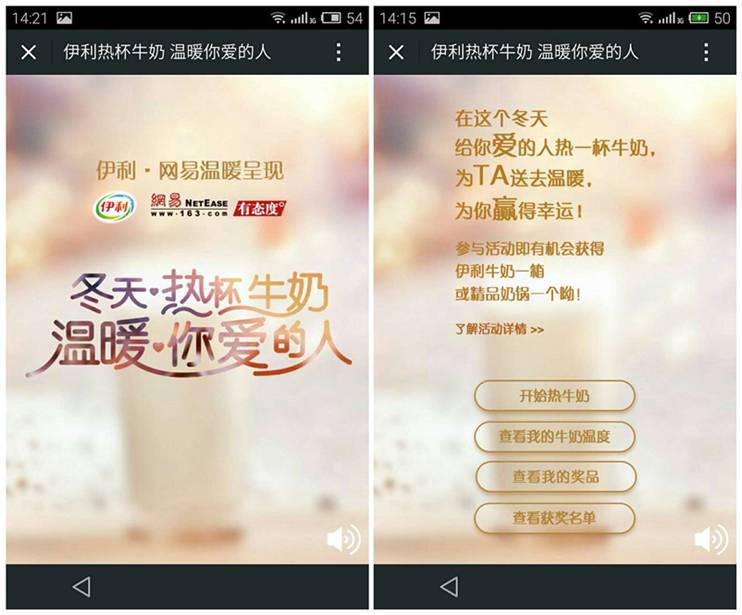 广告对于用户来说,是信息相通,还是气味相投?我想,用户因为情感的共鸣而自发传递,应该是传播的最高境界。正如今年年初,伊利与网易合作推出了“热杯牛奶,温暖你爱的人”主题项目,借助暖意,打通寒冷的冬日。活动搭载于网易新闻客户端之上,以H5页面的形式,主打温暖视觉及手掌互动。为吸引用户互动,开屏画面即呈现布满哈气的窗玻璃,就像冬日里在窗上涂鸦一样,只要用户擦擦屏幕,暖心文字浮现,温暖氛围就此营造。而随后的手掌互动,更进一步带给用户“温暖”体验,用户只需将手掌贴在屏幕之上,利用手机屏幕的感应机制,牛奶就可以被“加温”。为了扩大传播,活动中还设置了分享朋友圈,邀请好友一起加热的环节,借助“一杯牛奶”的暖意,品牌激发用户为爱而传递。