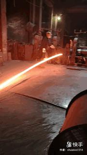 特殊的工作节奏,只有轧钢工才有。烧过的钢从加热炉出来的时候,是耀眼的橙红色,轧钢工用工具迅速拉动,在接近地面的空气里划出短暂的金光,放进另一架机器继续轧,发红的钢有近千摄氏度,每一次操作都要小心。小夏吃过亏,右小腿还留着一块疤,这是走神的代价。