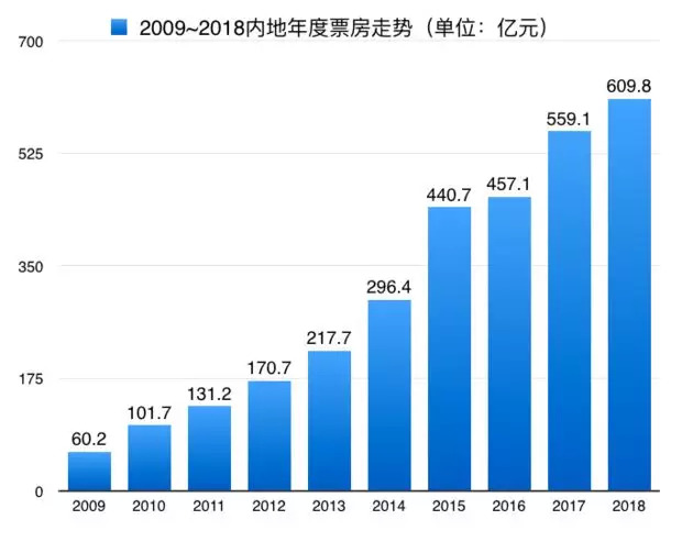 仅用了一年时间,内地电影市场的年度票房就从500亿时代迈入了600亿时代——2018年内地票房以609.76亿的成绩收官,又一个全新的票房纪录诞生了!