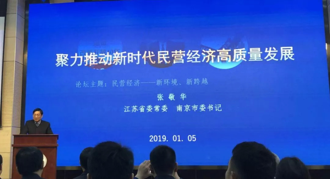 1月5日,南京市委书记张敬华在南大商学院做了一场《聚力推动新时代民营经济高质量发展》的演讲报告。