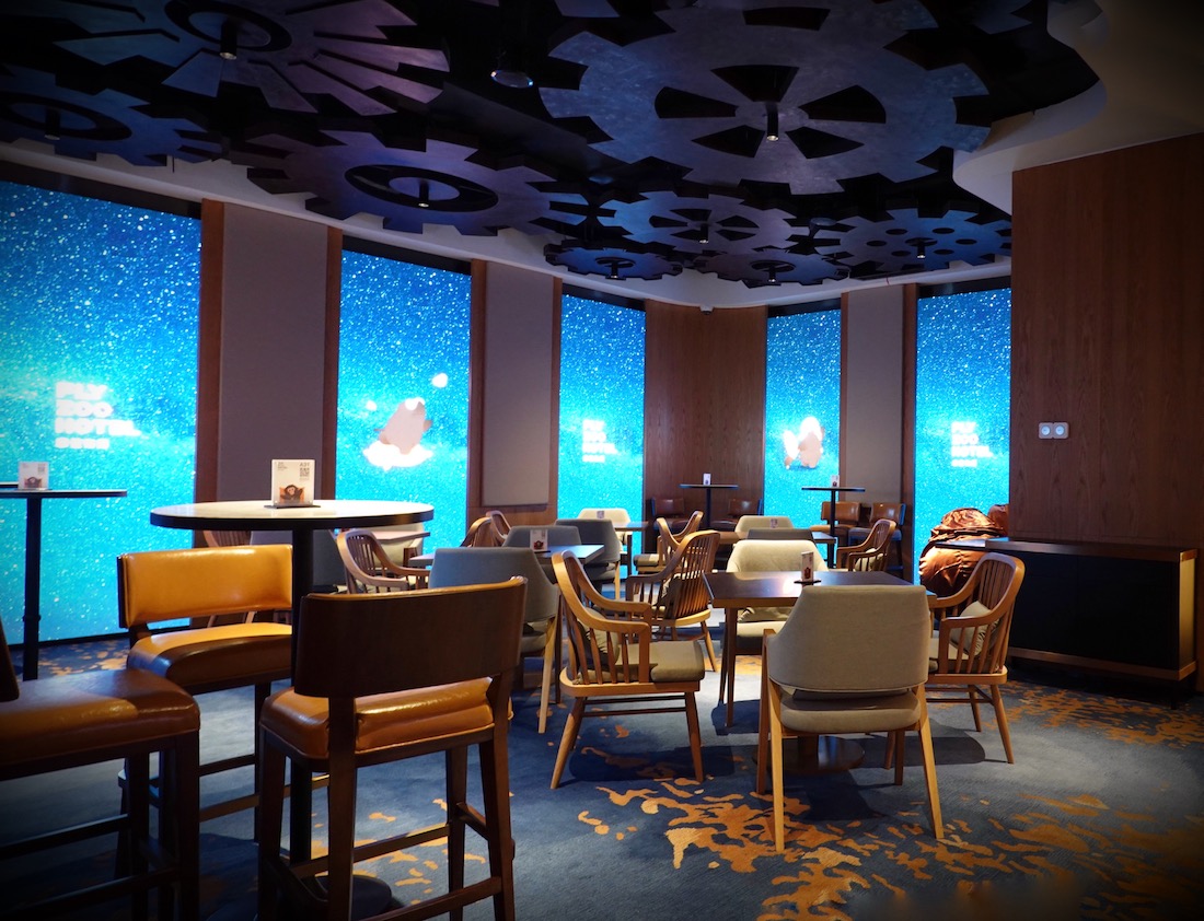 大堂吧没什么人,之前在酒店公共区域溜达的时候,看到这里有可以调酒的机器臂,径直找了过去,想看看它怎么调酒。