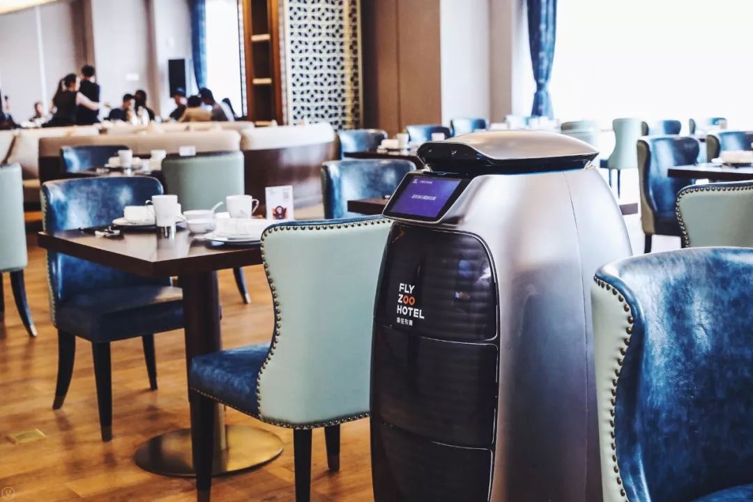 “未来”是离不开机器人的,酒店里机器人被赋予的职能是在餐厅空间内送餐到客人桌旁,以及送餐、送布草等到客人房间,或者,彩蛋职能便是接受客人们的好奇和“调戏”。