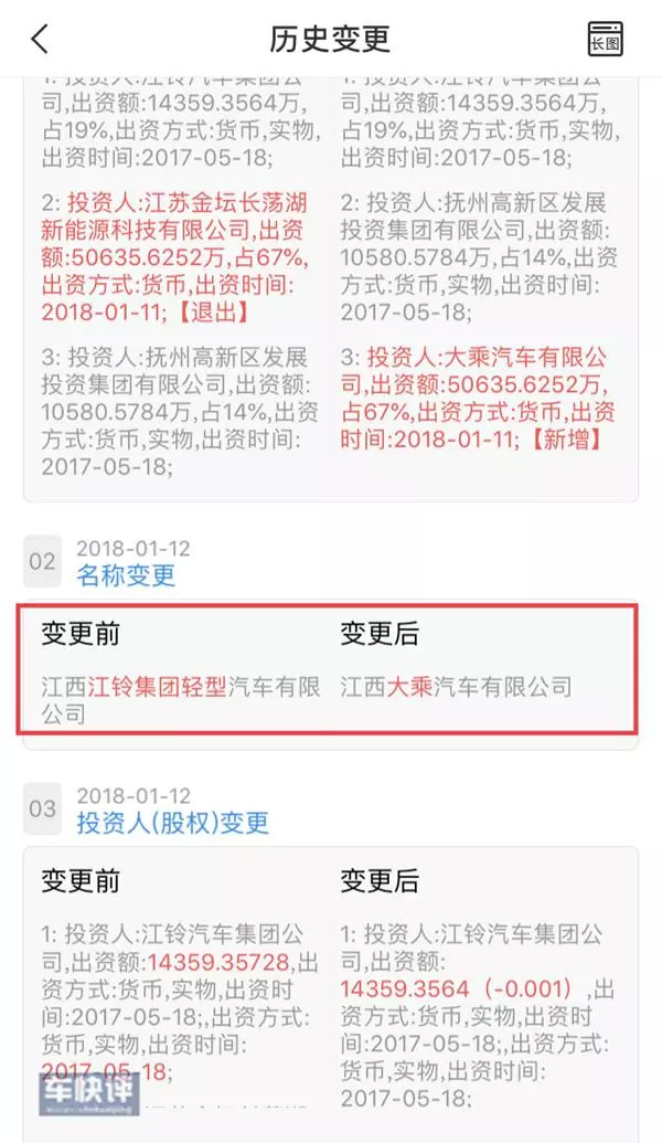通过查阅资料车快评注意到,江西大乘汽车有限公司前身为江西江铃集团轻型汽车有限公司,注册于1996年7月3日,注册资金为75575.56万元人民币。工商信息曾在2018年1月12日进行过变更,由江西江铃集团轻型汽车有限公司变更为江西大乘汽车有限公司,法人是吴潇。
