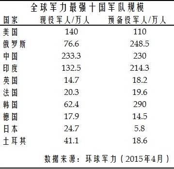 美国、俄罗斯、中国在全球综合军力排名中占据前三,印度、英国、法国紧随其后。排在第七至第十的分别是韩国、德国、日本和土耳其。