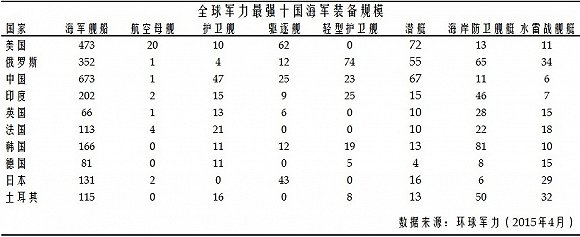 需要说明的是,环球军力纳入统计的海军舰船包括航母、护卫舰、驱逐舰、小型护卫舰、鱼雷艇、巡逻艇、两栖作战艇、登陆艇以及其他辅助船只。