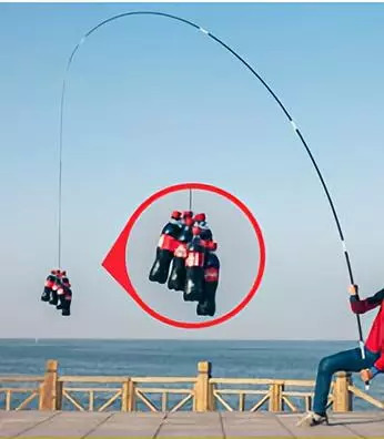 商家在拿着自己的鱼竿狂甩,喊出了“钓断我陪”的誓言。毕竟用鱼竿吊起了车轱辘,还有啥鱼能逃跑???